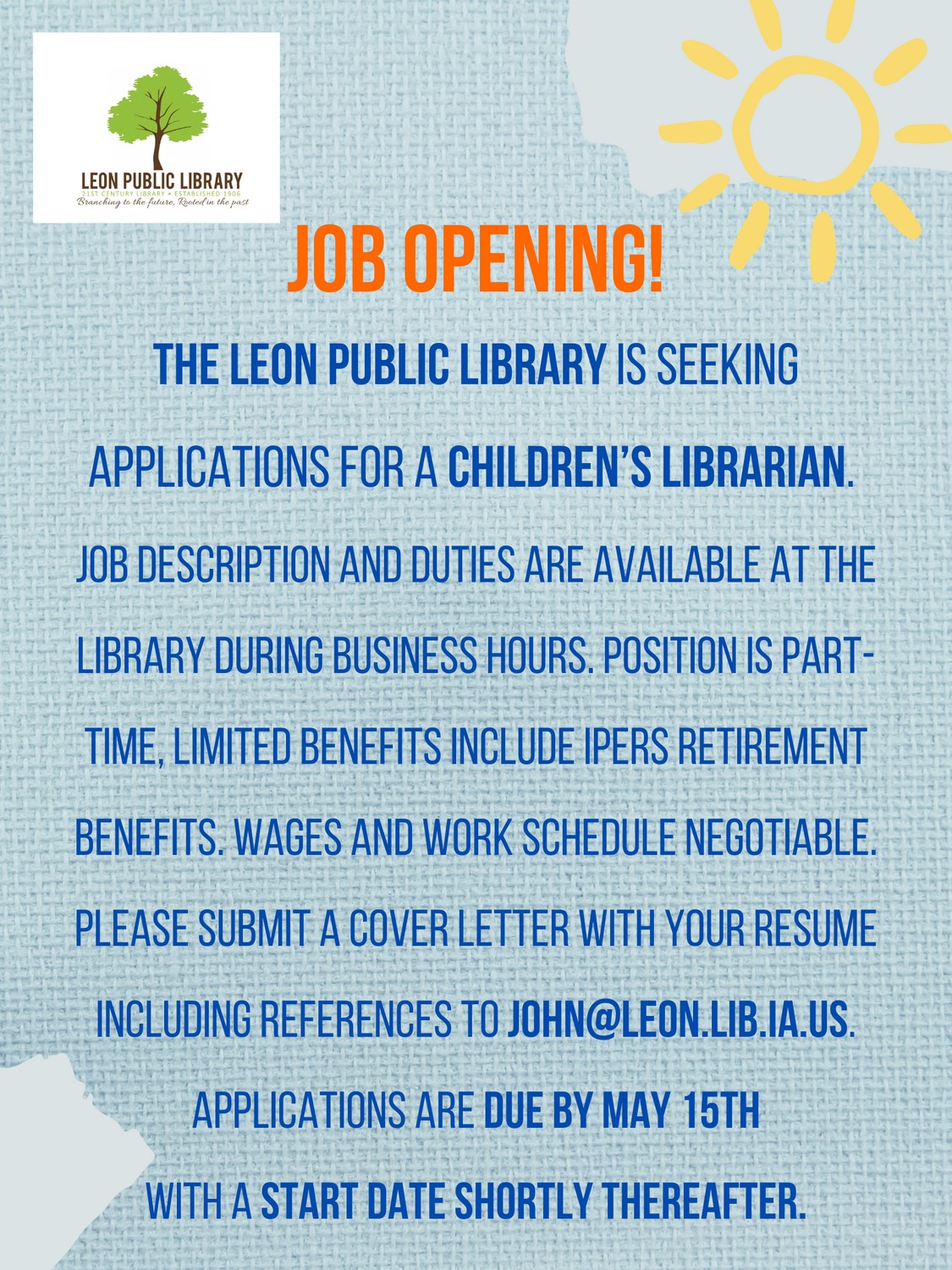Welcome to the Leon Public Library. The library is your one stop source for all of your informational needs. We have a large selection of books, magazines, newspapers, and electronic resources available to be checked out by our library card holders.